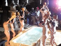続いて小学男女・中学生の部。年頃の中学生4名も、恥ずかしながら下帯姿で挑戦です。女の子は水取行衣を身につけてかぶります。全部で8杯かぶりました。