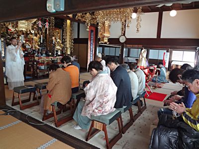 新春初詣 2015 2015年1月12日 最終更新日時 : 2022年2月27日 jissouji 大晦日『浄心水行・除夜の鐘つき』も無事終わり、新年を迎えると気温がぐんとさがってきた。元旦の朝の気温は-3℃、雪も薄っすら積もっており身に染みる寒さであった。 午後は寒さも幾分和らぎ、初詣でご参詣頂いた善男善女に初祈祷を勤修した。 「1年の計は、元旦にあり。」新年を迎え、心新たにお参りされた皆さんの、 今年1年のご安泰と心願成就を、心から御祈念致しております。合掌