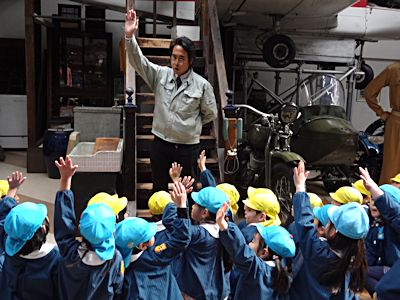 まん丸メガネでお馴染みの宮本副館長先生からユーモアあふれるお話をお聞きし、「のれ!みれ!さわれ!写真撮れ!」のキャッチフレーズを、子ども達は肌で感じながら楽しいんでいた。