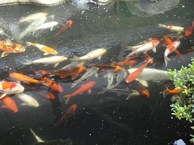 蒸し暑い日が続いているが、当山の鯉は毎日涼しげに泳いでいる。