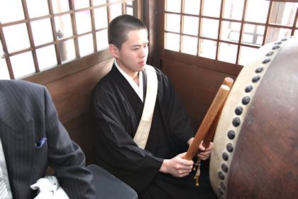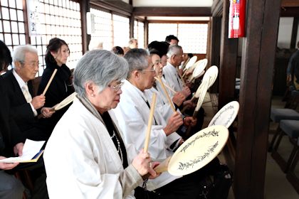 檀信徒の皆さんも、慣れた手つきで団扇太鼓を叩いておられました。