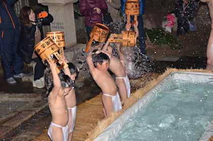 水の冷たさに驚きながらも、一生懸命水をかぶる子ども達です。