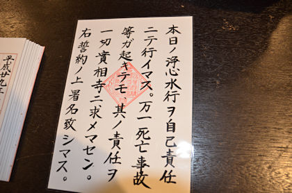 自己責任にての参加を誓約し、ここで気持ちが引き締まるようである。
