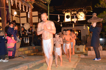 水行が終わって戻っていく際も、合掌をして清々しい表情であった。