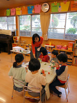 毎回妻(副園長)は「どんなお花を使おうかな…」と、子ども達に触れさせる花を工夫している。可愛らしい花、色の美しい花、季節の花、香りのよい花、珍しい花etc.… そんなお花に触れる子どもたちの反応は、とても嬉しそうである。