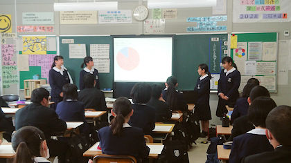 先月、城北中学校にて「働くことについての意見交流会」が開催された。昨年8月に様々な事業所で職場体験した中学生が、働くことについての研究発表をする場である。