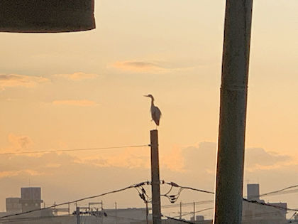 元旦の朝日を浴びながら大きな白い鳥が飛んできて、本堂近くの電柱の頂上にとまったのである。首を大きく伸ばし片足で立ち、何か今年の吉兆を感じさせる光景であった。