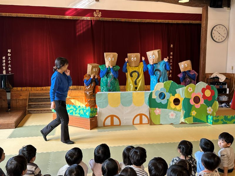 誰でしょう? 2025年12月7日 最終更新日時 : 2025年12月2日 jissou 先月の保育園でのお誕生日会、先生の余興がとても面白かった。 色違いの衣装で同じ紙袋をかぶった先生たち、普段と違う動きをするので子ども達もすっかり騙されていました。 さて園長先生の正解率は… 1人しか当てれませんでした😖